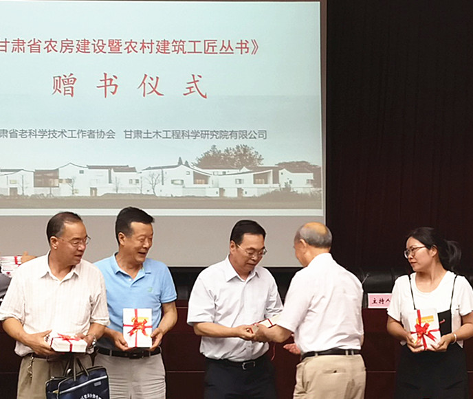 由我公司和甘肅省老科學技術工作者協會共同主編完成的《甘肅省農房建設暨農村建筑工匠叢書》(以下簡稱《叢書》)于2019年7月正式出版發行,并于7月30日在蘭州舉行了贈書儀式。甘肅省科協、省市發改、資源、環保、住建、工信、科技、墻改等政府部門的代表,以及甘肅省土木建筑協會、省建材行業協會等相關協會的代表共120多人參加了本次儀式。甘肅省老科學技術工作者協會會長劉祖和和公司黨委書記、董事長、總經理董紅健為大家進行現場贈書。
