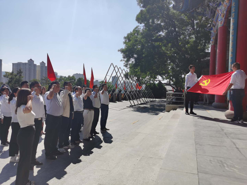 在講解員的引導下,全體黨員參觀了中共甘肅工委紀念館,重溫黨的光輝歷史,緬懷了革命先烈在艱苦卓絕的條件下視死如歸、勇往直前、無私奉獻的堅定信仰。黨員們面向黨旗重溫入黨誓詞,再憶入黨初心,激勵自己內化于心,外化于行,在本職崗位不忘初心、牢記使命、履職盡責,以實際行動傳承發揚百折不撓的革命精神。