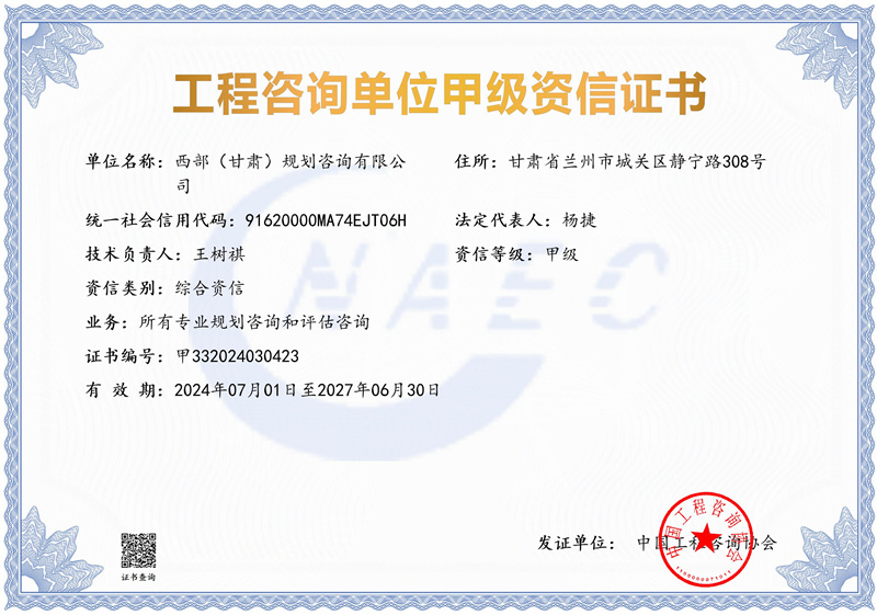 6月下旬,經(jīng)中國(guó)工程咨詢協(xié)會(huì)評(píng)審,甘肅工程咨詢集團(tuán)旗下西部(甘肅)規(guī)劃咨詢有限公司,成功取得工程咨詢單位綜合甲級(jí)資信和7項(xiàng)專業(yè)甲級(jí)資信,實(shí)現(xiàn)了我省工程咨詢“綜甲”從無到有的歷史性突破。西部(甘肅)規(guī)劃咨詢公司是甘肅工程咨詢集團(tuán)著眼深化改革、優(yōu)化資源配置、培育發(fā)展新業(yè)務(wù)而創(chuàng)建的綜合咨詢技術(shù)服務(wù)企業(yè)。公司圍繞貫徹落實(shí)國(guó)家重大戰(zhàn)略和全省發(fā)展規(guī)劃,組建專家智庫(kù)團(tuán)隊(duì),主動(dòng)開展戰(zhàn)略性、前瞻性研究,先后高質(zhì)量完多項(xiàng)重大咨詢?nèi)蝿?wù)。